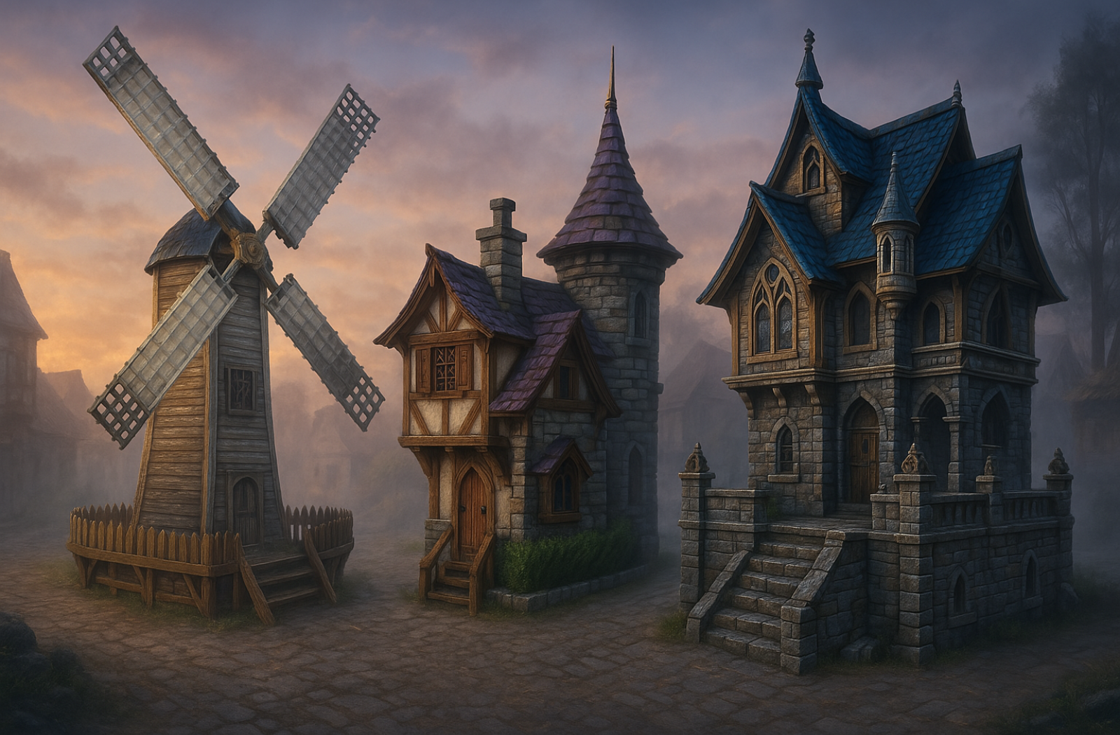 Ob im 28–32 mm Maßstab oder darüber hinaus: Unsere Ruinen, Türme, Brücken und Würfeltürme bringen Atmosphäre, Deckung und taktische Möglichkeiten an deinen Spieltisch.
