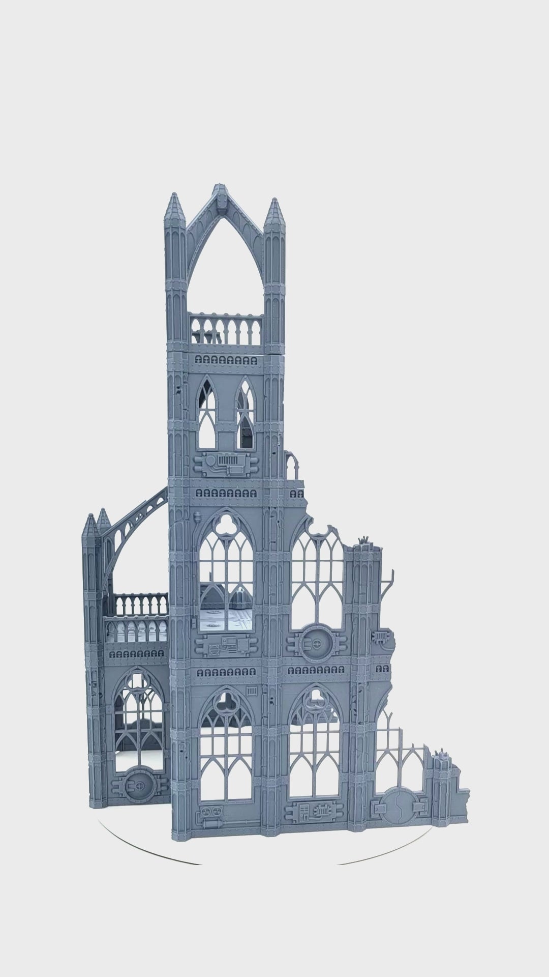 The Large Auditorium Ruin is an impressive Gothic sci-fi building for ambitious tabletop gaming. Three floors, a mighty tower, and an exposed balcony make this terrain model a tactical and visual highlight of any collection. Authentic ruin details, destroyed facades, and weathered walls bring the unyielding grimdark aesthetic of the 40k universe directly to the table. Suitable for Warhammer 40K, the model also unfolds its full appeal in Horus Heresy and Kill Team – a building that not only accompanies battles, but also helps shape them.