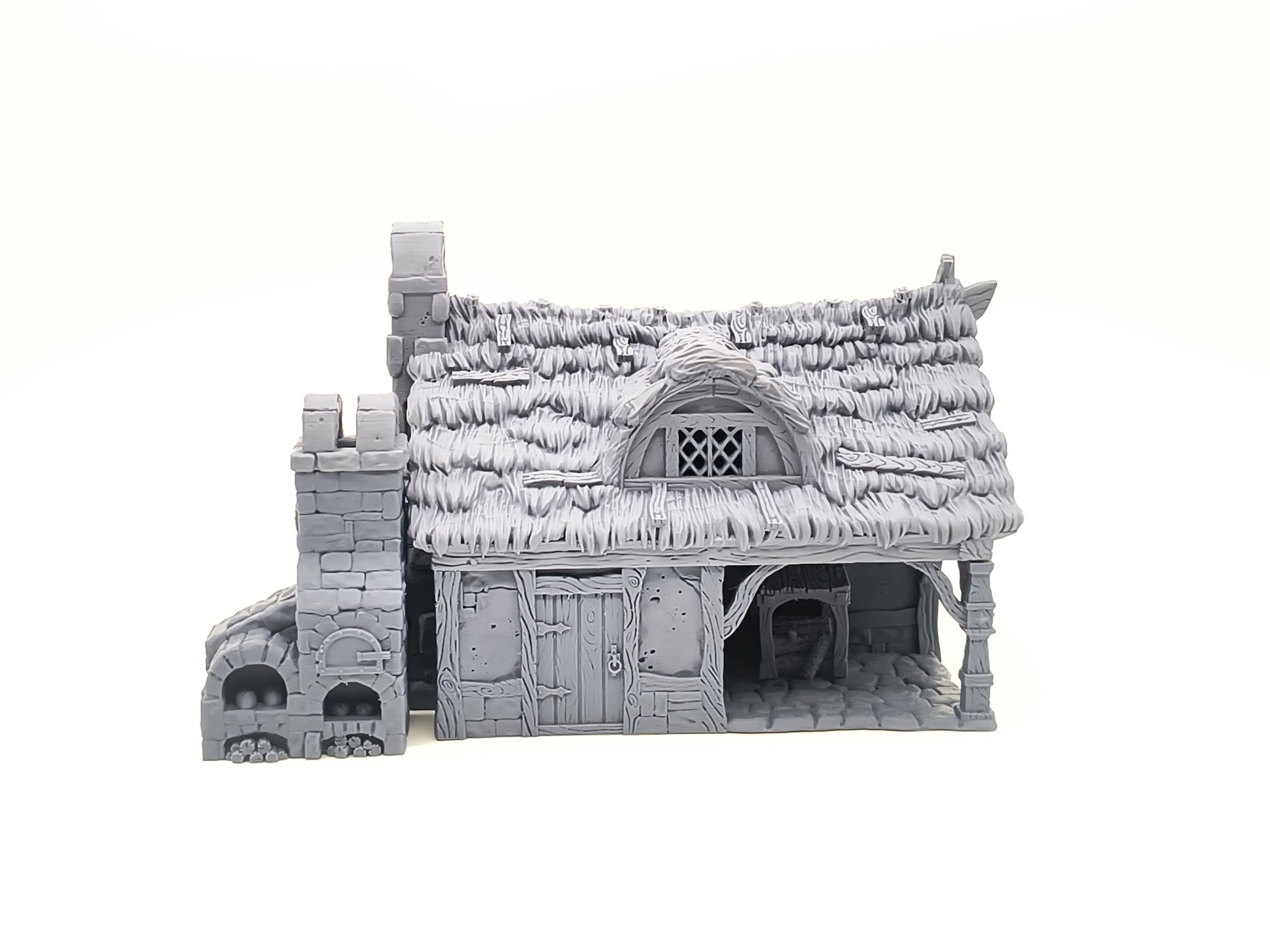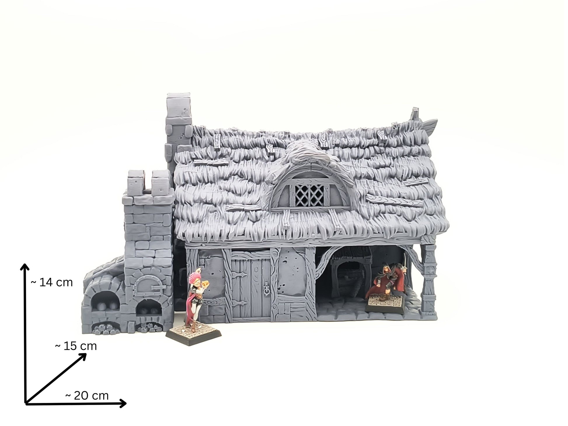 Dieses liebevoll gestaltete Bäckerhaus ist ein stimmungsvolles Gebäude für dein Fantasy-Gelände mit mittelalterlichem Flair. Mit Fachwerk, Schornstein und Ofen eignet sich das Haus perfekt als authentische Kulisse für Dörfer, Stadtviertel oder Marktplätze. Ob als Treffpunkt für Dorfbewohner, als Ziel einer Quest oder als Handwerksbetrieb, in dem seit Generationen gebacken wird – dieses Modell fügt sich nahtlos in jede Spielwelt ein. Die detaillierte Struktur lädt zur Bemalung ein und macht das Gebäude zu einem atmosphärischen Element auf jedem Spieltisch. Ideal für immersive Szenarien rund ums Handwerk, das Leben im Dorf und das Bäckerhandwerk im Fantasy-Stil.