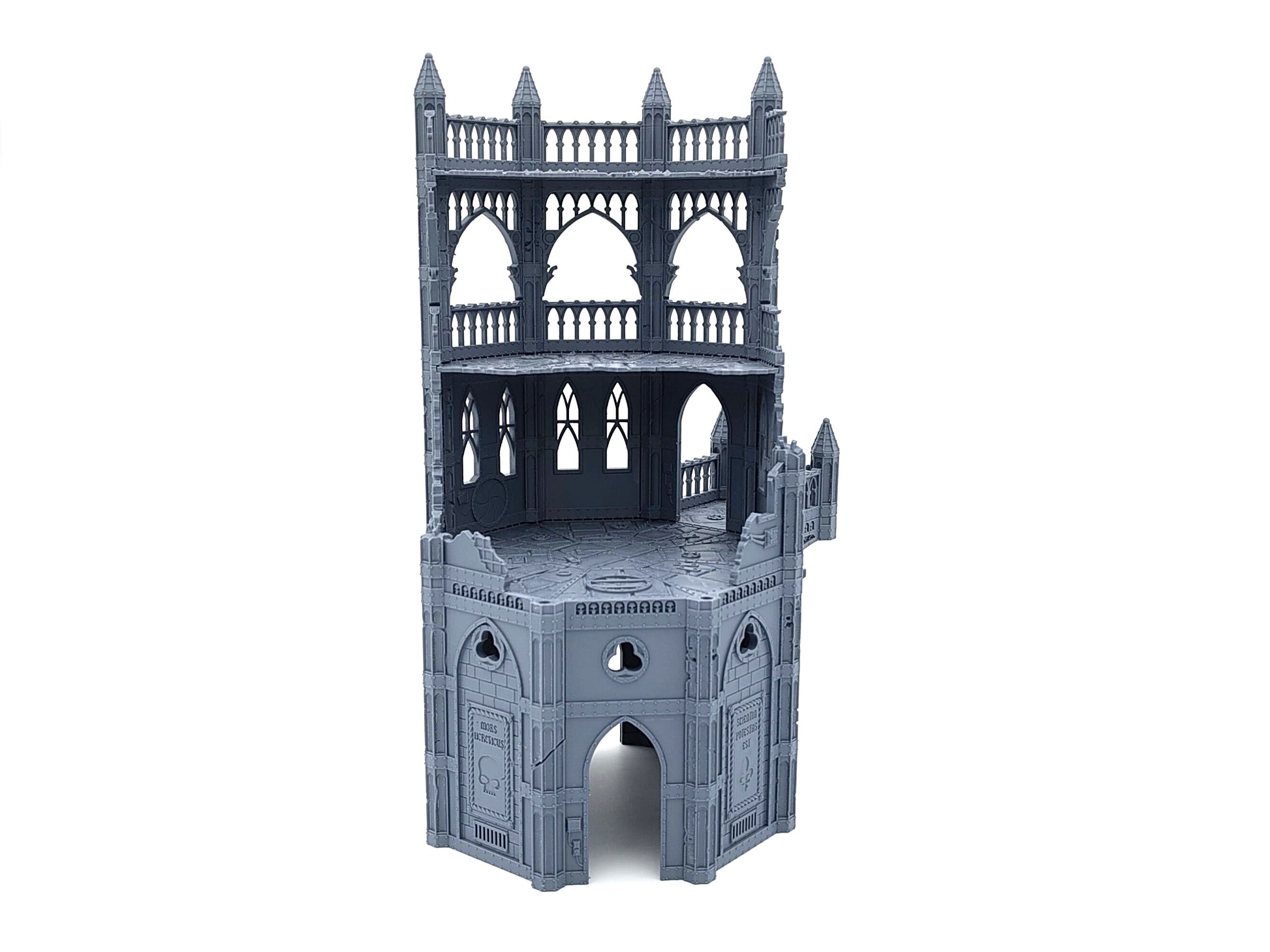 Die Sainte Anne Tower Ruin A ragt als stolzes Mahnmal vergangener Größe über das Schlachtfeld – eine hohe, von Krieg gezeichnete Turmruine mit drei Ebenen und einem exponierten Balkon, der gefährliche Sichtlinien über das gesamte Gelände eröffnet. Die imposante Gothic-Architektur, verwitterten Fassaden und tiefdetaillierten Ruinen-Strukturen verleihen diesem Sci-Fi Gebäude eine unverkennbare grimdark Atmosphäre, die das 40k-Universum auf beeindruckende Weise lebendig werden lässt. Geeignet für Kill Team, entfaltet der Turm seine volle strategische und visuelle Wirkung ebenso in Necromunda und Warhammer 40K.
